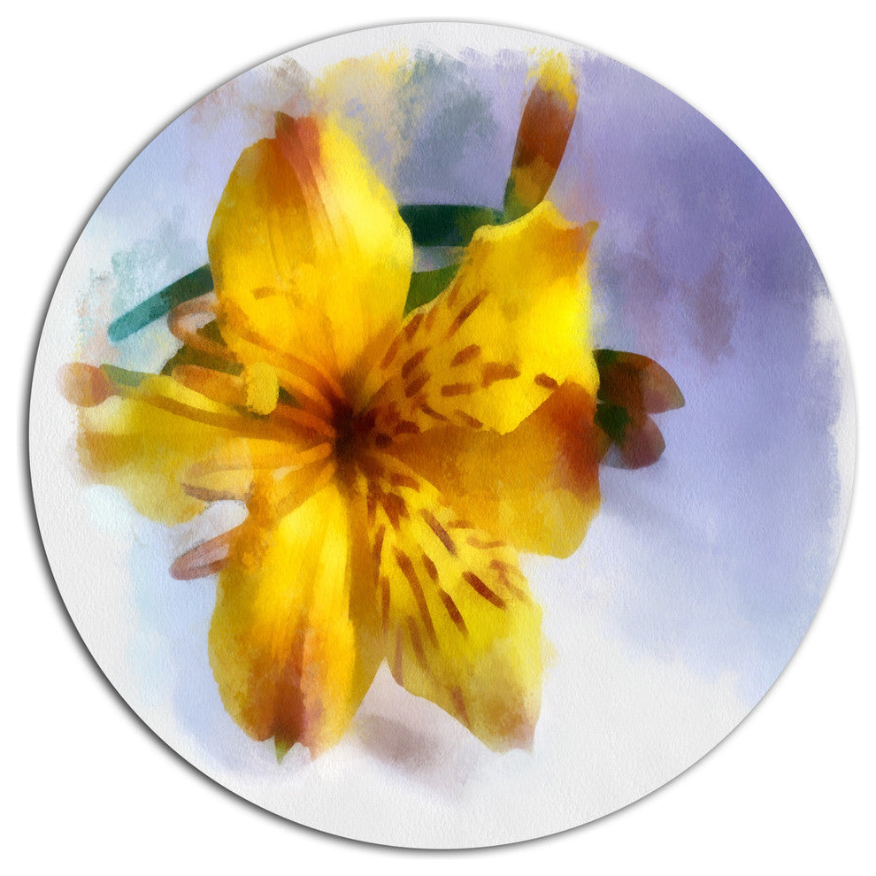 Bring Contemporary Abstraction to your home with this large Circle Metal wall art. This Yellow Lily Hand-drawn Flower Metal Artwork makes it the focal point of any room or office.