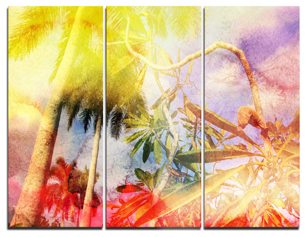 "Yellow Retro Palm Trees" Metal Wall Art, 3 Panels, 36"x28"