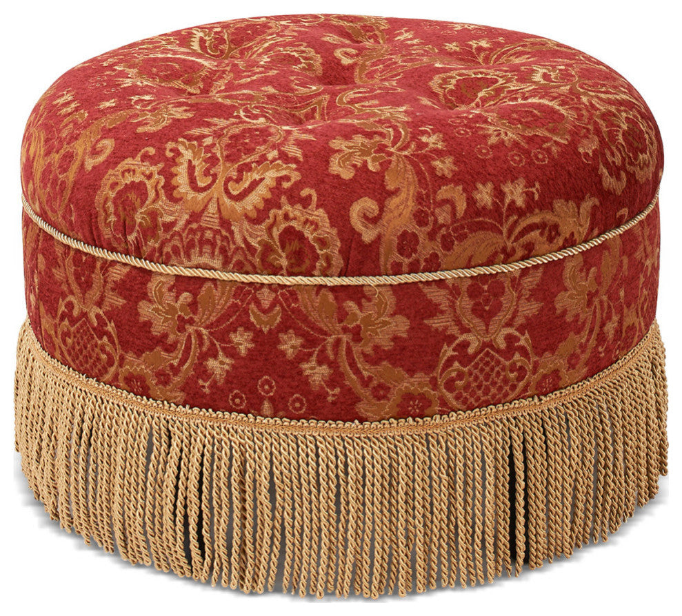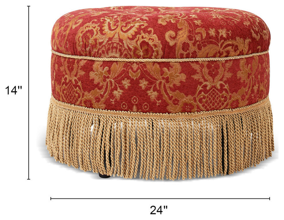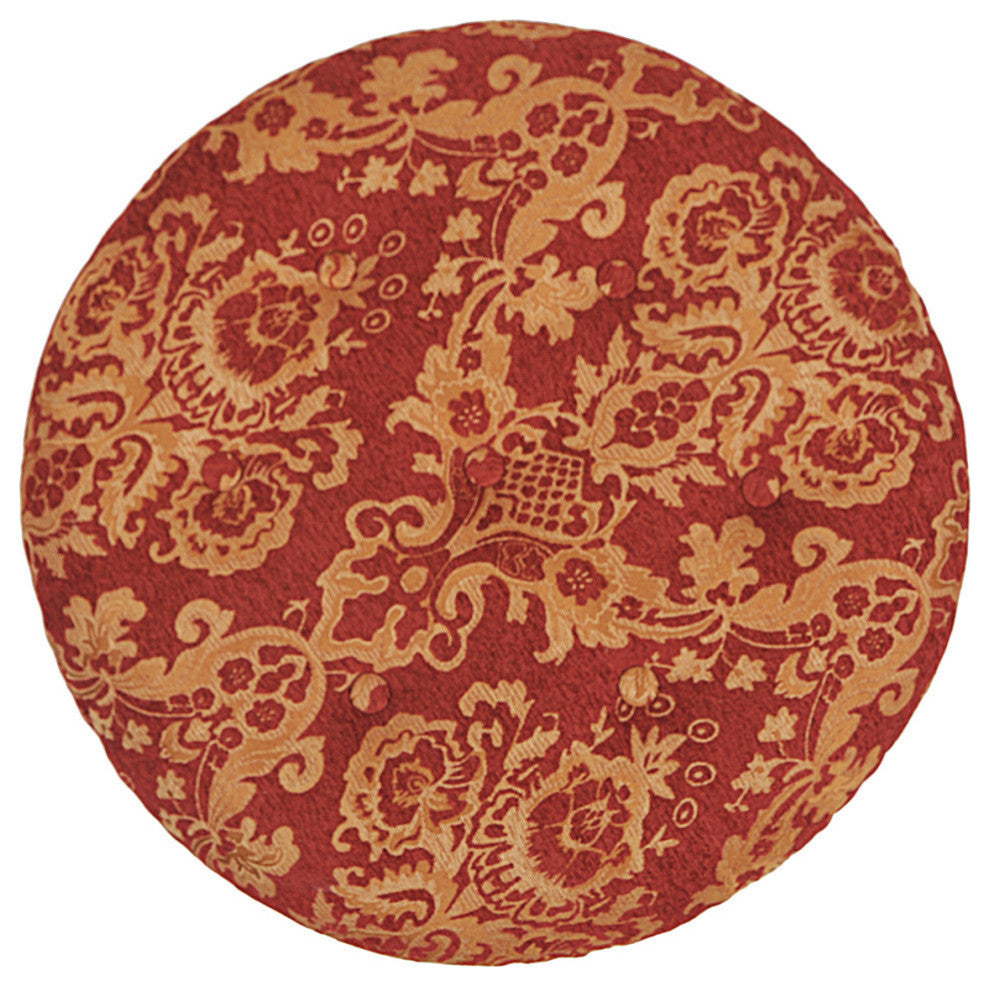 Yolanda 24" Upholstered Round Accent Ottoman, Red & Gold Damask