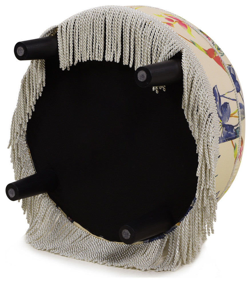 Yolanda 24" Upholstered Round Accent Ottoman, Tropical Floral Beige