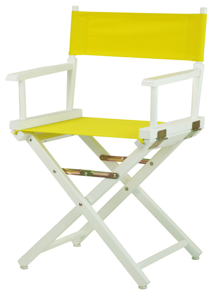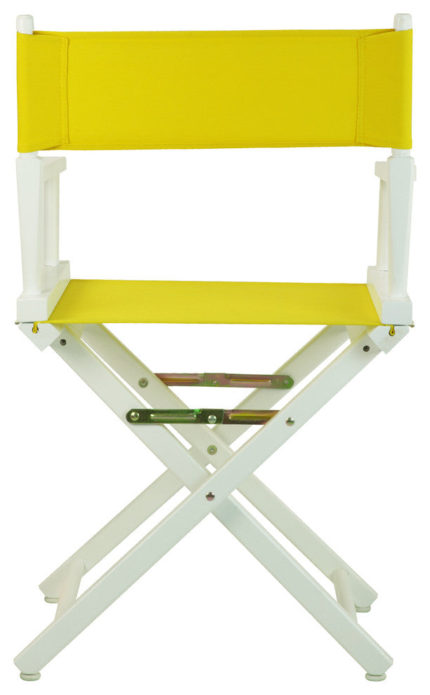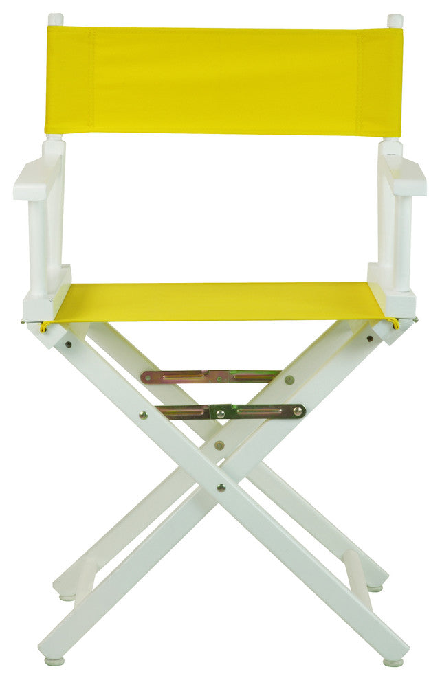 18" Director''s Chair White Frame-Yellow CanvasDiscover a variety of uses for this classic-style Director''s Chair. Constructed with 100% solid wood, this portable Directors Chair is built for lasting strength. Foldable design makes transportation and storage a breeze--meaning you can move it from room to room or transport it for special occasions with ease. An excellent solution for homes, schools, events, and businesses alike.Classic style fits permanent or temporary seating for any occasion. Foldable design for effortless transport and storage. Built-in armrests provide comfort and support. No assembly required, simply install the canvas and enjoy.Made with 100% Solid Wood for increased durability and longevity. Dimensions: 20" x 16" x 32"H, Seat-height approx. 18", Back cover size: 20" x 6", Seat cover size: 18" x 16". Item Dimensions - 21.75"W x 17"D x 33.75"HItem Weight - 7.75