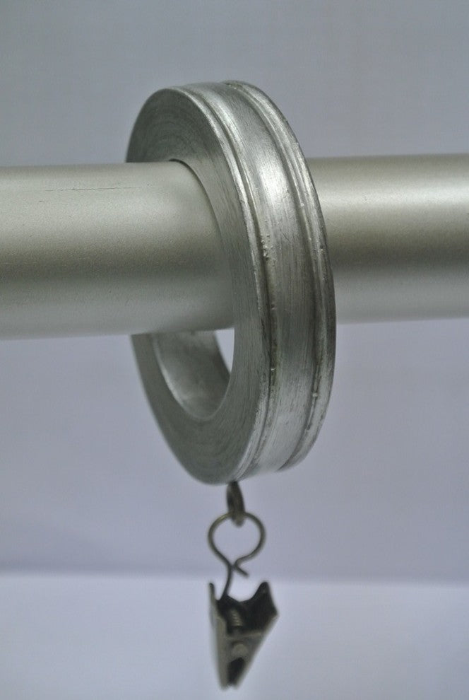 1 3/4" Banded Designer Curtain Rings, Pewter, Set of 7