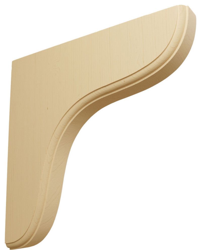 1 3/4"W x 10 1/2"D x 10 1/2"H Eaton Wood Bracket, Alder. Authentic wood brackets are the perfect choice for supporting countertops and shelving. With the proper installation, these wood brackets can support up to 250lbs, which gives you the flexibility to use a decorative bracket for support. Available in a variety of species, these brackets ship to you fully sanded and ready for your paint or stain.