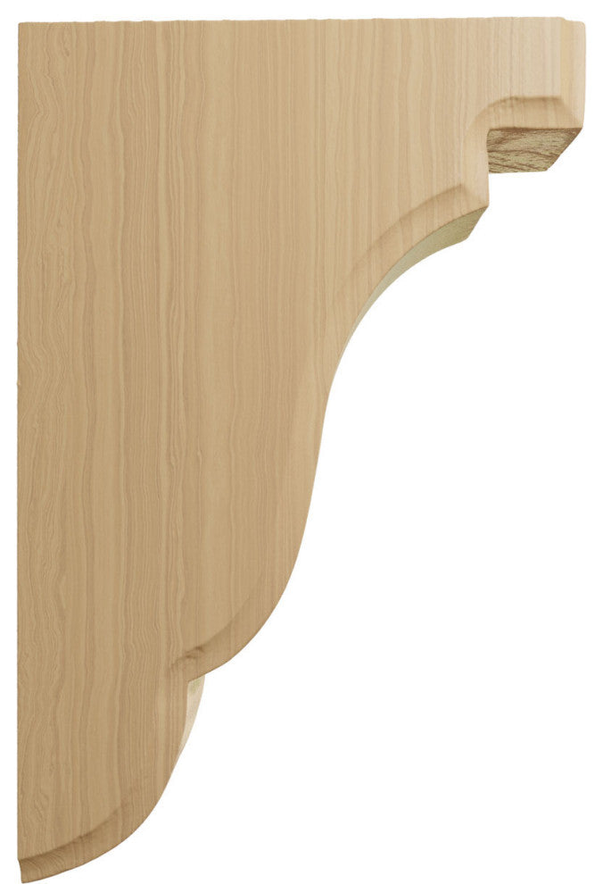 1 3/4"W x 5"D x 7 1/2"H Bedford Wood Bracket, Cherry. Authentic wood brackets are the perfect choice for supporting countertops and shelving. With the proper installation, these wood brackets can support up to 250lbs, which gives you the flexibility to use a decorative bracket for support. Available in a variety of species, these brackets ship to you fully sanded and ready for your paint or stain.