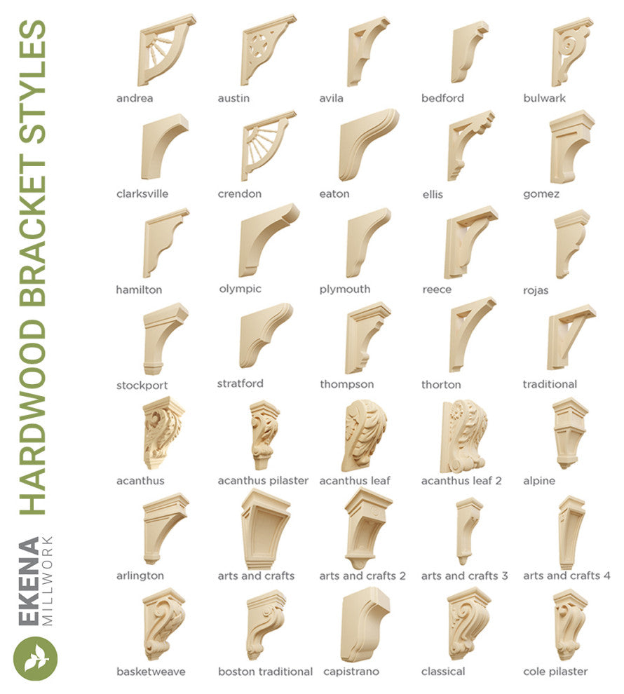 1 3/4"W x 6"D x 12"H Clarksville Bracket, Walnut. Authentic wood brackets are the perfect choice for supporting countertops and shelving. With the proper installation, these wood brackets can support up to 250lbs, which gives you the flexibility to use a decorative bracket for support. Available in a variety of species, these brackets ship to you fully sanded and ready for your paint or stain.