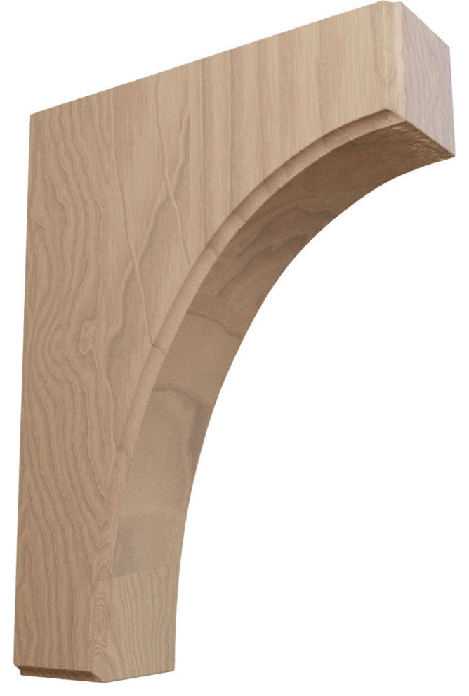 1 3/4"W x 6"D x 8"H Clarksville Bracket, Mahogany. Authentic wood brackets are the perfect choice for supporting countertops and shelving. With the proper installation, these wood brackets can support up to 250lbs, which gives you the flexibility to use a decorative bracket for support. Available in a variety of species, these brackets ship to you fully sanded and ready for your paint or stain.
