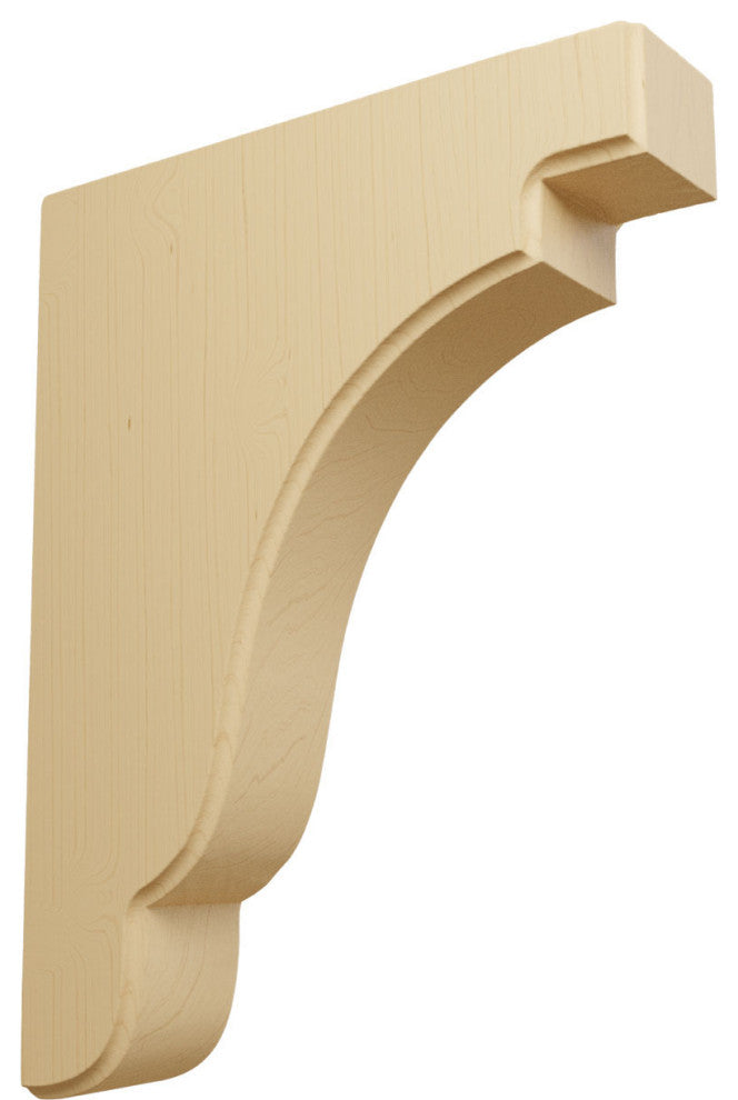 1 3/4"W x 7 1/4"D x 9 1/2"H Bedford Wood Bracket, Alder. Authentic wood brackets are the perfect choice for supporting countertops and shelving. With the proper installation, these wood brackets can support up to 250lbs, which gives you the flexibility to use a decorative bracket for support. Available in a variety of species, these brackets ship to you fully sanded and ready for your paint or stain.