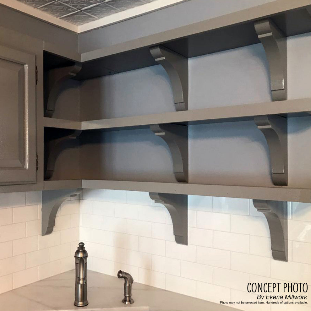 1 3/4"W x 8 1/2"D x 11"H Plymouth Wood Bracket, Cherry. Authentic wood brackets are the perfect choice for supporting countertops and shelving. With the proper installation, these wood brackets can support up to 250lbs, which gives you the flexibility to use a decorative bracket for support. Available in a variety of species, these brackets ship to you fully sanded and ready for your paint or stain.
