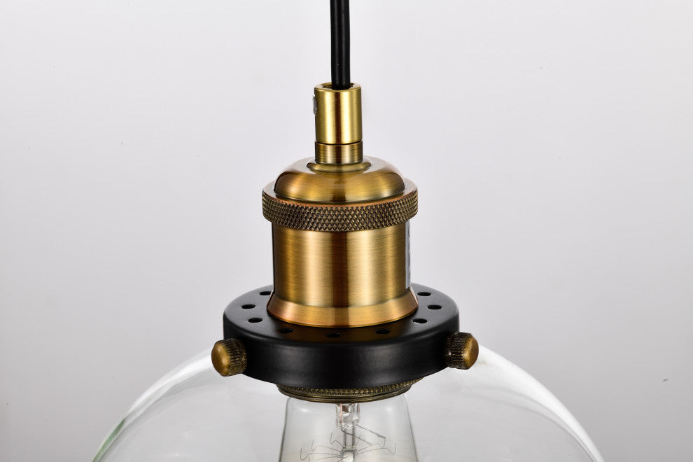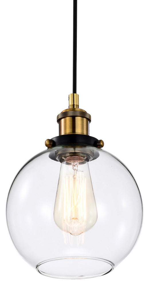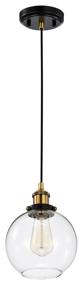 1-Light Black and Antique Brass Mini Pendant Light With Clear Globe Glass Shade