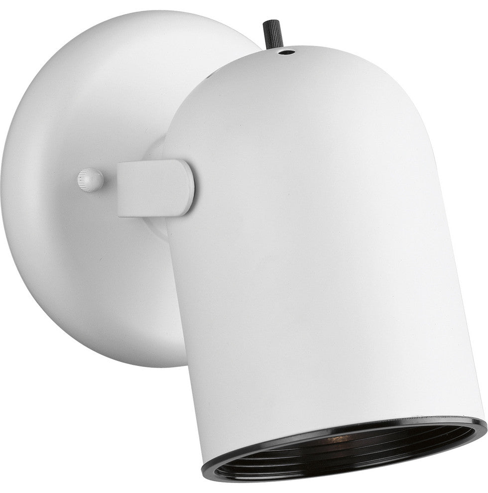 One-light round back wall or ceiling mount directional with on/off switch in White finishFinish: WhiteBulb Type: Uses PAR-20Bulb Wattage: 50Bulb Quantity: 1Listed: Damp location listedMount Type: Wall Or CeilingStyle: Contemporary/ModernFeatures: White finishOne-lightWall or ceiling mountRoom Type: Hall & Foyer Lighting and/or Great Room LightingDimensions: Width/Diameter:5"Height:6-13/16"Specifications:Mounting:Wall or ceiling mountedMounting strap for outlet box includedCanopy covers a standard 4 hexagonal recessed outlet boxElectrical:Pre-wired120VLamping: cCSAus Damp location listed1 year warrantyCompanion fixtures are availableQuantity: 150W PAR-20Medium ceramic socketAdditional Information:cCSAus Damp location listed1 year warrantyCompanion fixtures are available