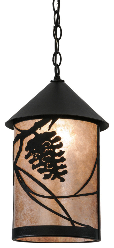 Listen closely. You can almost hear the soft whisper of the pine branches as they dance in the wind. Enjoy the warm ambiance of soft beautiful light diffused through this rustic pendant shade s Silver Mica featuring stunning pinecone and pine branch designs. Hand finished in handsome Bold Black and handcrafted by Meyda Artisans in Yorkville, New York. Create the design, colors, and the size and style of your choice. Energy efficient lamping options available.