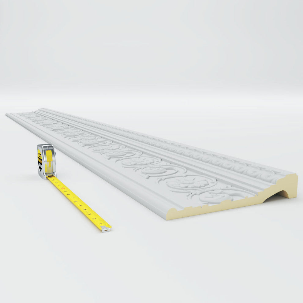 11 1/4"H x 1 7/8"P x 96"L, (19 1/4" Repeat) Bedford with Flowers Moulding. Our beautiful panel moulding and corners add a decorative, historic feel to walls, ceilings and furniture pieces- They are made from a high-density urethane which gives each piece the unique details that mimic that of traditional plasting and wood designs but at a fraction of the weight- This means a simple and easy installation for you- The best part is that you can make your own shapes and sizes by simply cutting the moulding pieces down to size and then butting them up to the decorative corners- These are also commonly used for an inexpensive wainscot look-Features- Modeled after original historical patterns and designs-- Constructed from solid urethane for maximum durability and detail-- Lightweight for quick and easy installation-- Factory-primed and ready for paint or faux finish-- Can be cut, drilled, glued and screwed-- Designed for use on both interior and exterior applications-- Material- Urethane