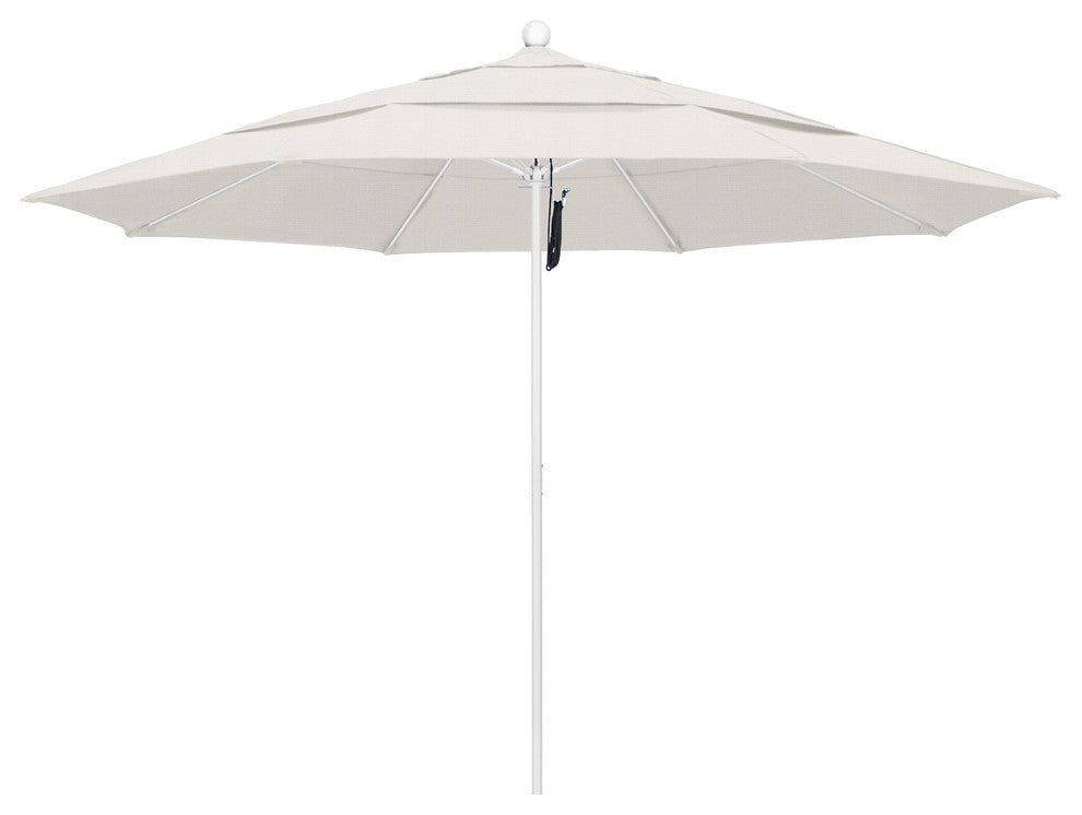 11' Fiberglass Umbrella With White Frame, Woven Granite, 11'