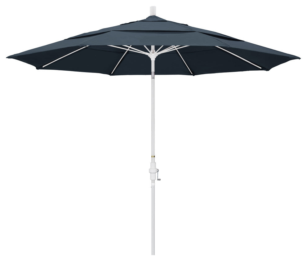 11' Matted White Collar Tilt Lift Fiberglass Rib Aluminum Umbrella, Pacifica, Sapphire