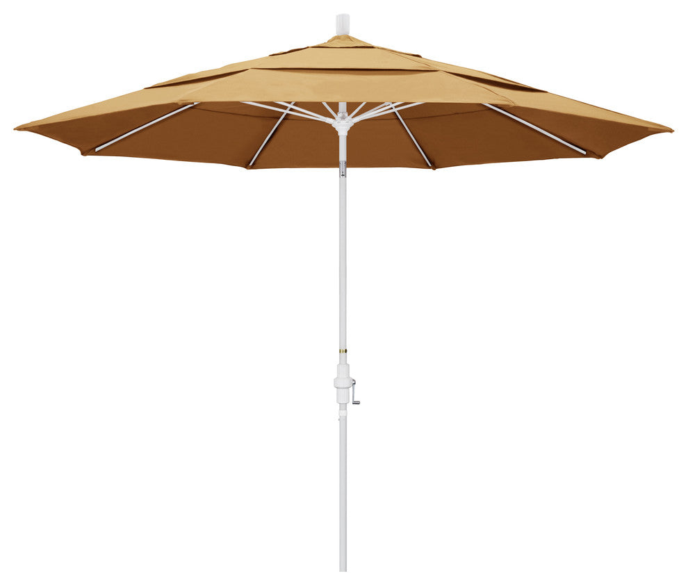 11' Matted White Collar Tilt Lift Fiberglass Rib Aluminum Umbrella, Sunbrella, Wheat