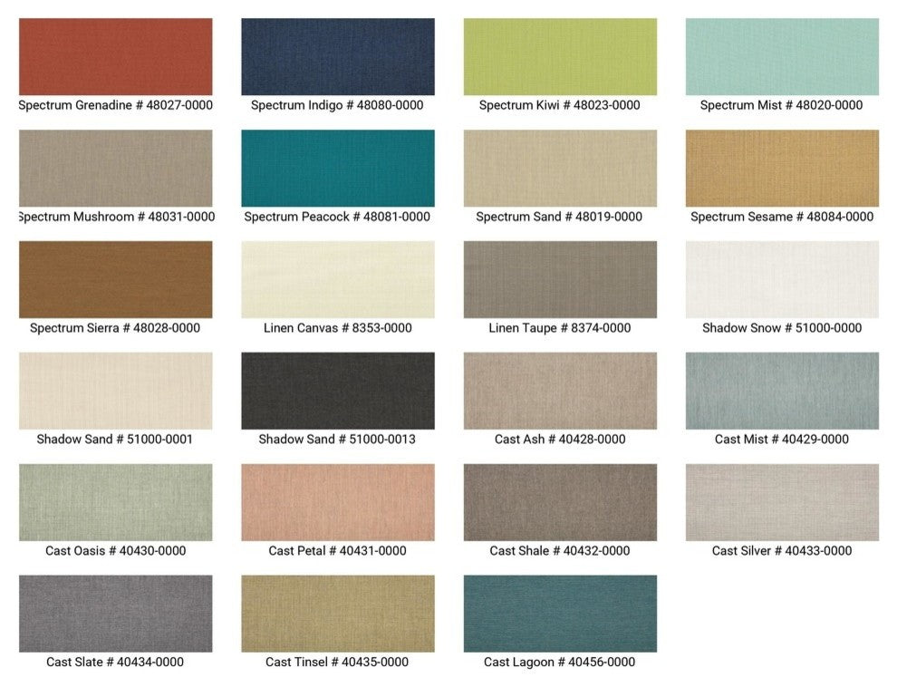 Choose your Sunbrella fabric color from the swatch shown in 2nd picture.Set includes: Sunbrella Fabric Dining Cushions for 10 Chairs & 122" Double Extension Rectangle Dining Table and 10 Chairs (8 Armless, 2 Arm).With a unique dual butterfly extension leaf system integrated into the table, one or both of the butterfly leaves can be collapsed or extended at any time.There is a 2" hole for umbrella in middle of table, lid (wooden cap) provided to cover hole when umbrella not in use.Stainless steel is also used to complement the beauty of teak in the construction of our furniture.All critical connections are made in the traditional mortise-and-tenon joinery with the strictest tolerances. We use only select kiln-dried teakwood.Cushions Thickness is 2.5". All the Cushions comes with a zipper in the back side and ties for easy removal when needed.Assembly: Very little assembly is required (Hardware & Instructions included). Assembly is quick and simple.Please search Houzz for our tailor made, high quality cushions for this furniture set by looking for "Sunbrella Fabric Outdoor Cushion" in the Houzz search tool!Table Dimension: 83" Length (Closed position), 102.5" (Single leaf extended out) and 122" Length (Both leaves extended out), 43" Width, 31" Height, 2" Umbrella Hole is in the center of the tableArm Chair Dimension: 22.5" Width x 22" Depth x 34.5" Height; Seat Dimensions: 21" Width x 18" DepthArmless Chair Dimension: 19.5" Width x 22" Depth x 34.5" Height; Seat Dimensions: 19.5" Width x 18" Depth