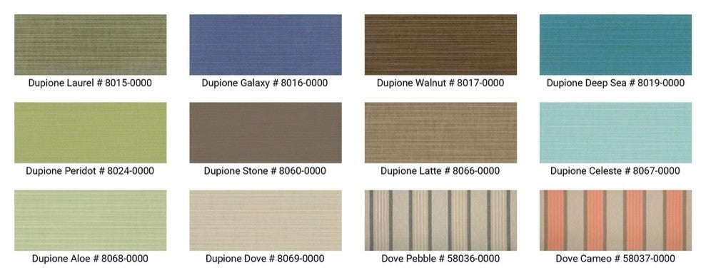 Choose your Sunbrella fabric color from the swatch shown in 2nd picture.Set includes: Sunbrella Fabric Dining Cushions for 10 Chairs & 122" Double Extension Rectangle Dining Table and 10 Chairs (8 Armless, 2 Arm).With a unique dual butterfly extension leaf system integrated into the table, one or both of the butterfly leaves can be collapsed or extended at any time.There is a 2" hole for umbrella in middle of table, lid (wooden cap) provided to cover hole when umbrella not in use.Stainless steel is also used to complement the beauty of teak in the construction of our furniture.All critical connections are made in the traditional mortise-and-tenon joinery with the strictest tolerances. We use only select kiln-dried teakwood.Cushions Thickness is 2.5". All the Cushions comes with a zipper in the back side and ties for easy removal when needed.Assembly: Very little assembly is required (Hardware & Instructions included). Assembly is quick and simple.Please search Houzz for our tailor made, high quality cushions for this furniture set by looking for "Sunbrella Fabric Outdoor Cushion" in the Houzz search tool!Table Dimension: 83" Length (Closed position), 102.5" (Single leaf extended out) and 122" Length (Both leaves extended out), 43" Width, 31" Height, 2" Umbrella Hole is in the center of the tableArm Chair Dimension: 22.5" Width x 22" Depth x 34.5" Height; Seat Dimensions: 21" Width x 18" DepthArmless Chair Dimension: 19.5" Width x 22" Depth x 34.5" Height; Seat Dimensions: 19.5" Width x 18" Depth