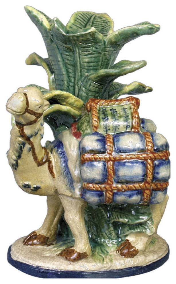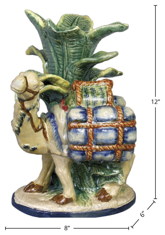 Trust the Ceramic Camel Vase to complete your display cabinet. It is made from ceramic. Place this atop your desks or shelves to highlight this piece. This figurine features a camel with a saddle on its back. This is perfect for people who are collecting decorative pieces of different designs.Features:•  Overall product dimensions are 8" W x 6" D x 12" H•  Made from ceramic material for durability•  Boasts a hand painted finish for uniqueness•  Can be used as a vase or a decorative piece•  Low-maintenance and easy to cleanDimensions:Vases, Urns, Jars, & Bottle•  Assembled Product: 8 inches wide x 6 inches deep x 12 inches high.