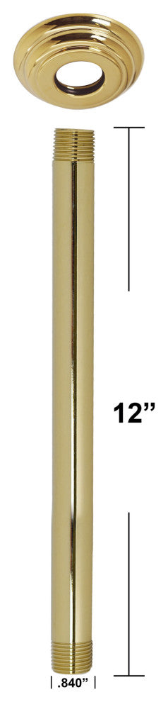 Use this plated, solid brass, 1/2 in. IPS, ceiling mounted shower arm, for small projection, ceiling mounted rain shower heads of all diameters. 12 in. long. Decorative, machined brass flange included. 1/2 in. x 12 in. ceiling arm and D3800 Heavy Duty Flange. Lead Free Brass Nipple.