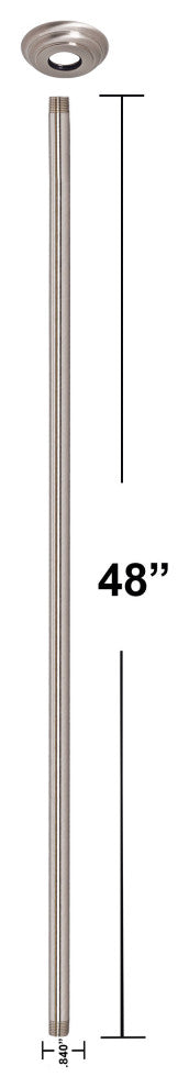 Use this plated, solid brass, 1/2 in. IPS, ceiling mounted shower arm, for long projection, ceiling mounted rain shower heads of all diameters. 48 in. long. Decorative, machined brass flange included. 1/2 in. x 48 in. ceiling arm and D3800 Heavy Duty Flange. Lead Free Brass Nipple.