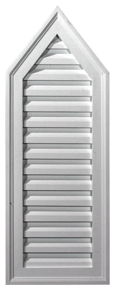 12"W x 32"H x 1 3/4"P, Peaked Gable Vent - Decorative. Decorative gable vents provide flair to the exterior of your home, allowing you to maintain a consistent appearance without the need for installing unnecessary and costly functional gable vents- Made from high-density polyurethane, Ekenas decorative vents are lightweight and easy to install- They are designed to withstand the elements, resisting rotting, cracking and insect infestations, and they come factory-primed and ready for your choice of paint-Features- Modeled after original historical patterns and designs-- Constructed from solid urethane for maximum durability and detail-- Lightweight for quick and easy installation-- Factory-primed and ready for paint or faux finish-- Can be cut, drilled, glued and screwed-- Designed for use on both interior and exterior applications-- Material - Urethane