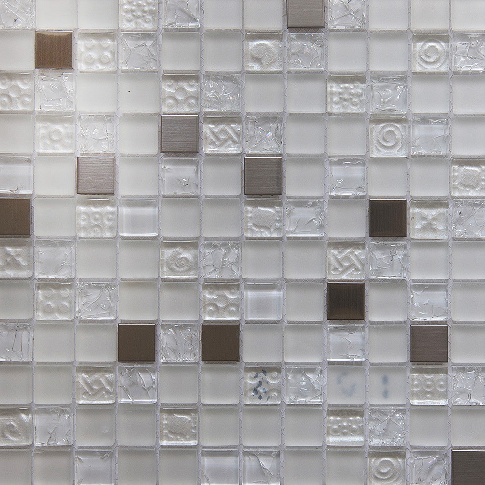 12"x12" Glass and Metal Mosaic Tile, Diana, Square, Set of 50