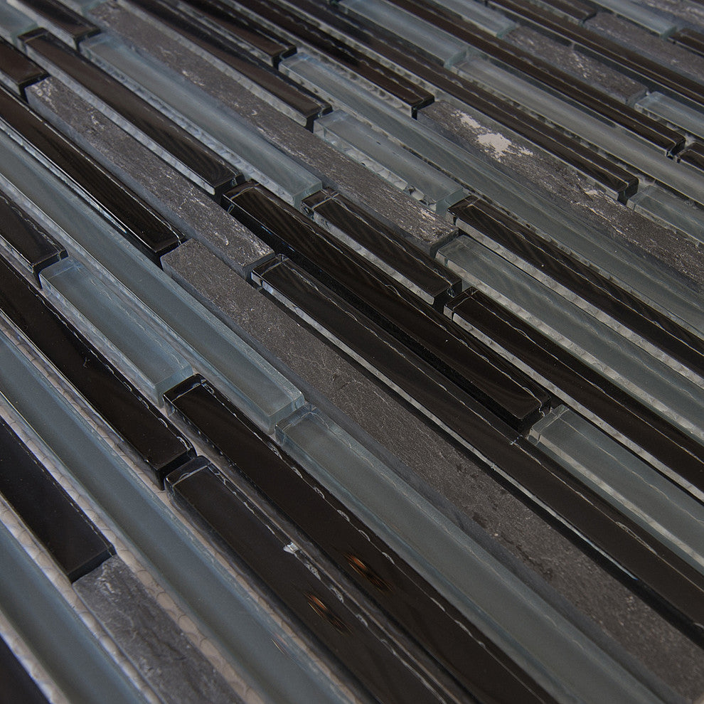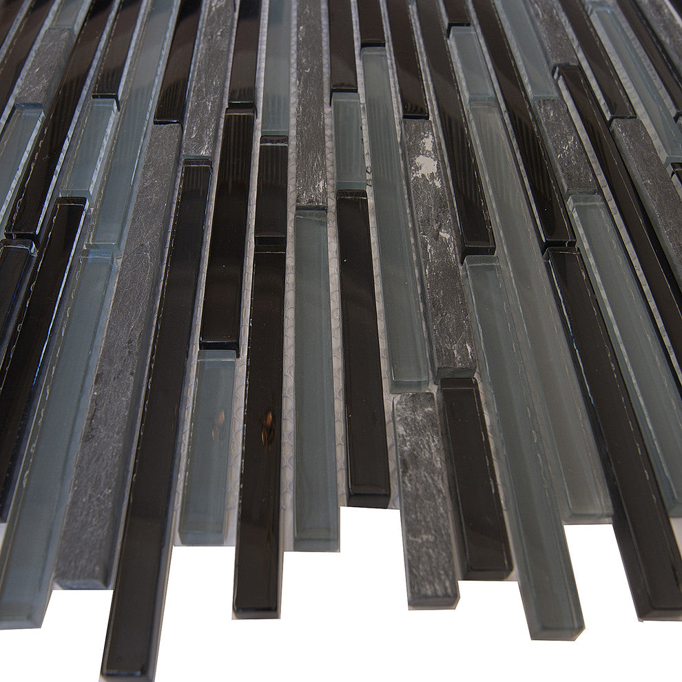 12"x12" Glass and Stone Mosaic Tile, Midnight, Strips, Set of 5