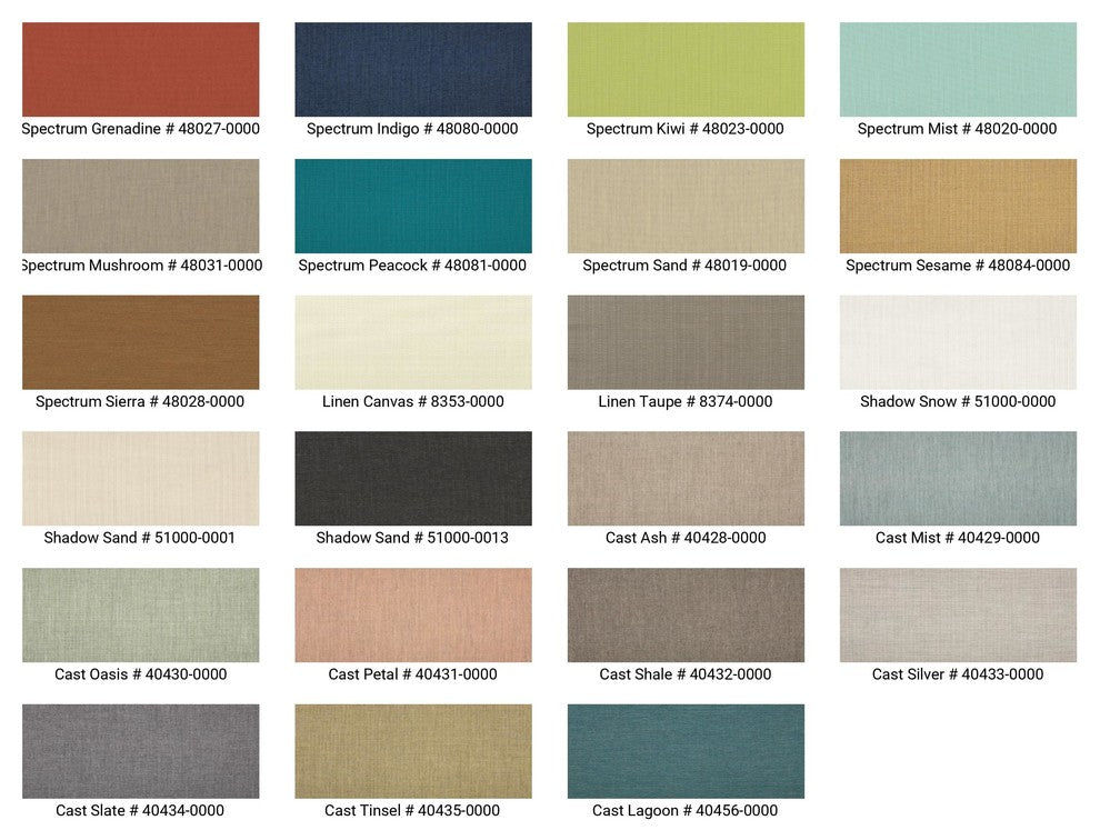 Choose your Sunbrella fabric color from the swatch shown in 2nd picture.Set includes: Sunbrella Fabric Dining Cushions for 12 Chairs & 122" Double Extension Rectangle Dining Table and 12 Arm Chairs.With a unique dual butterfly extension leaf system integrated into the table, one or both of the butterfly leaves can be collapsed or extended at any time.There is a 2" hole for umbrella in middle of table, lid (wooden cap) provided to cover hole when umbrella not in use.Stainless steel is also used to complement the beauty of teak in the construction of our furniture.All critical connections are made in the traditional mortise-and-tenon joinery with the strictest tolerances. We use only select kiln-dried teakwood.Cushions Thickness is 2.5". All the Cushions comes with a zipper in the back side and ties for easy removal when needed.Assembly: Very little assembly is required (Hardware & Instructions included). Assembly is quick and simple.Please search Houzz for our tailor made, high quality cushions for this furniture set by looking for "Sunbrella Fabric Outdoor Cushion" in the Houzz search tool!Table Dimension: 83" Length (Closed position), 102.5" (Single leaf extended out) and 122" Length (Both leaves extended out), 43" Width, 31" Height, 2" Umbrella Hole is in the center of the tableArm Chair Dimension: 22.5" Width x 22" Depth x 34.5" Height; Seat Dimensions: 21" Width x 18" Depth