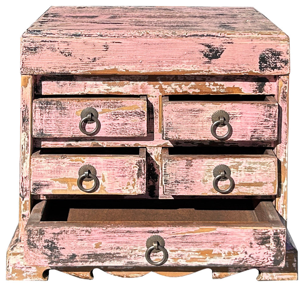 14" Distressed Faded Pink Small 5 Drawers Storage Chest Box