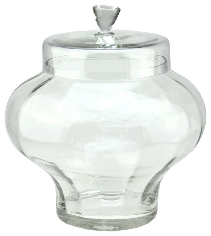 This ample sized container can be used in a variety of waysIdeal for creating a terrarium storing dried goods or as a giant candy jarDimensions: 14.5" high x 11.5" diameter (measured at widest point)Material(s): Glass