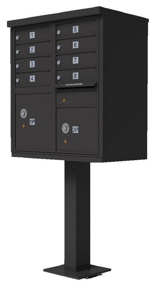 1570 8 Door Cluster Box Unit (CBU), Bronze8 door cluster box unitFor decorative stucco Tall CBU mailbox centersUSPS approvedProduct Dimension(WxDxH): 31"x17"x62"Color: Bronze