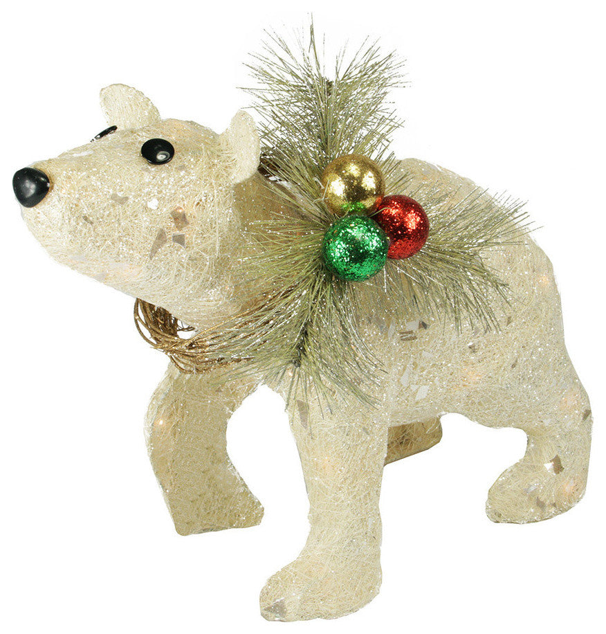 16" Lighted Sparkling Sisal Baby Polar Bear Christmas Yard Art Decoration