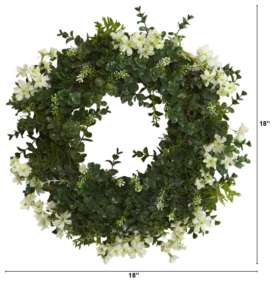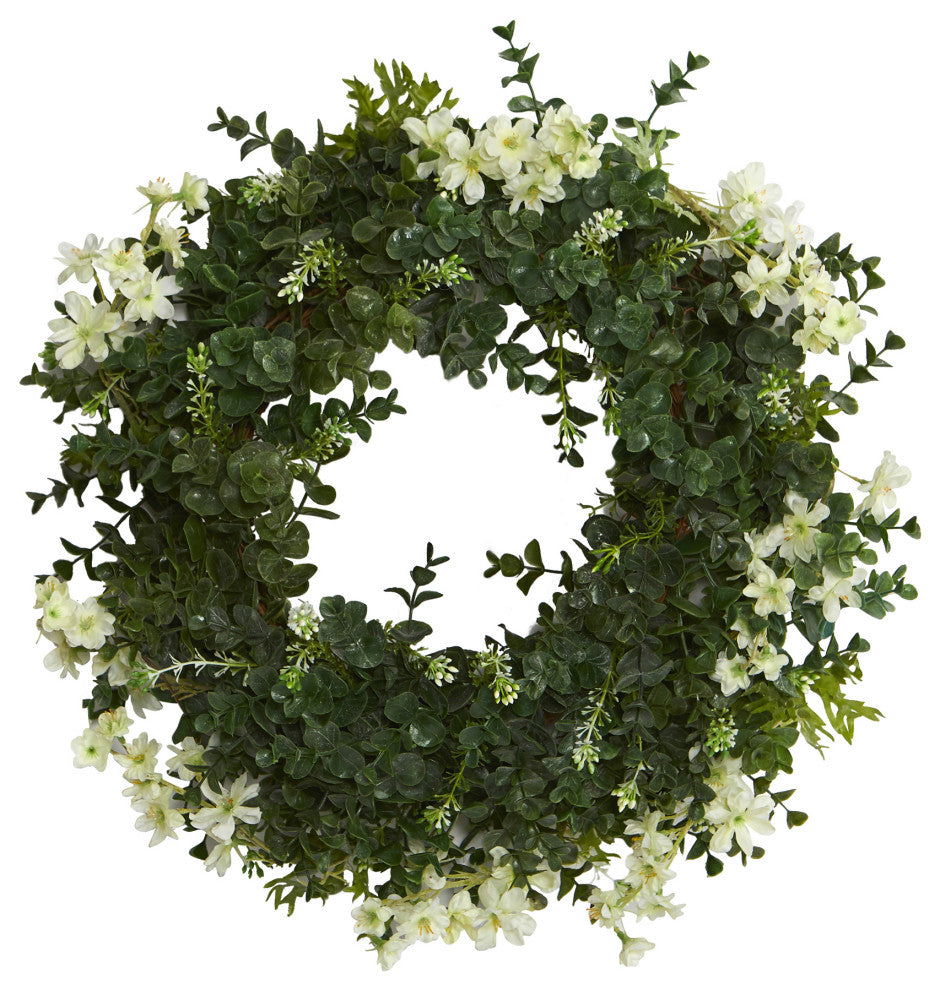 Update your traditional decor accents with the beauty provided by this artificial wreath constructed on a double ring with realistic looking eucalyptus evergreens set on a twig base, delicately accented with dancing daisies in soft, flirty hues. Great for year-round display, this artificial wreath makes for an inviting accent and will undoubtedly transform your home''s front-door appeal.