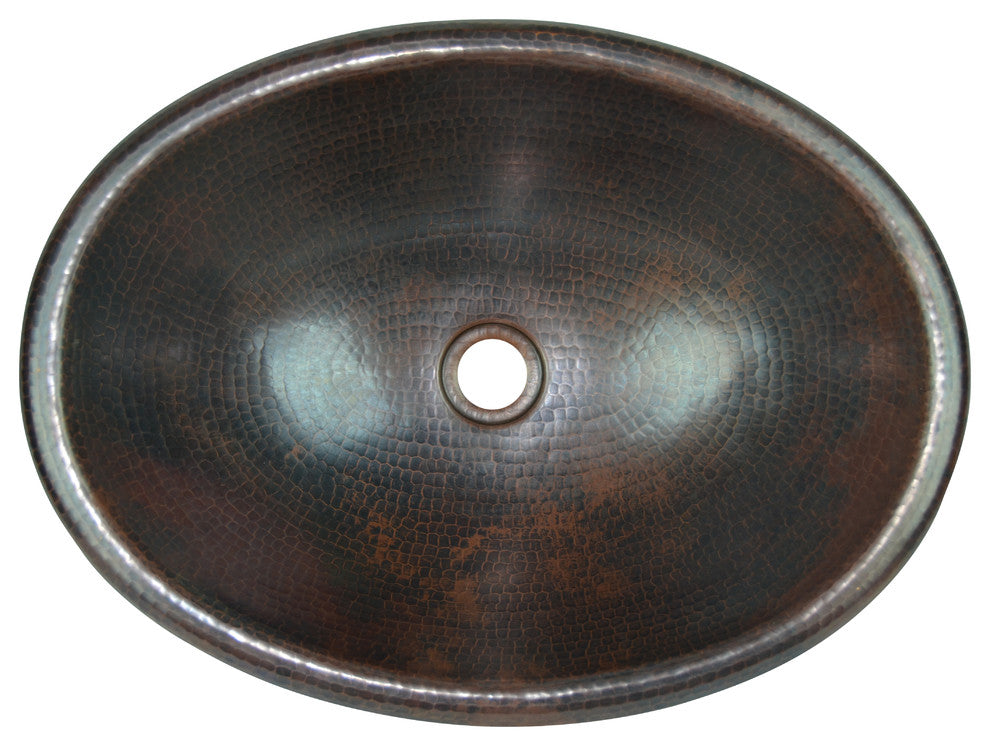 Oval Plain Copper SinkElevate your bathroom or kitchen with the understated elegance of this handmade oval plain copper sink. Crafted with precision and care, this sink offers a timeless design that complements a wide range of styles, making it a versatile and sophisticated addition to any space.Features:Dimensions: 19" X 14" X 6", the oval shape provides a spacious and practical basin that fits seamlessly into different countertop designs.Material: 100% recycle copper, Made from high-quality, 16-gauge copper, known for its durability.Finish: The sink features a smooth, hand-hammered finish that enhances the natural warmth and richness of copper. With time, the copper will develop a unique patina, adding character and depth to the sink"™s appearance.Design: The simple yet elegant oval shape offers a classic look that blends effortlessly with both traditional and modern décor styles. Its plain design emphasizes the beauty of the copper itself, making it a subtle yet striking feature in any room.Installation: Designed for TOP-mount or drop-in installation, providing flexibility to integrate the sink into various countertop settings.Care: Easy to maintain, the copper"™s natural resistance to bacteria ensures that the sink remains hygienic and beautiful with minimal upkeep.This handmade oval plain copper sink is ideal for those who appreciate timeless design and quality craftsmanship, offering a refined and elegant focal point in any bathroom or kitchen.