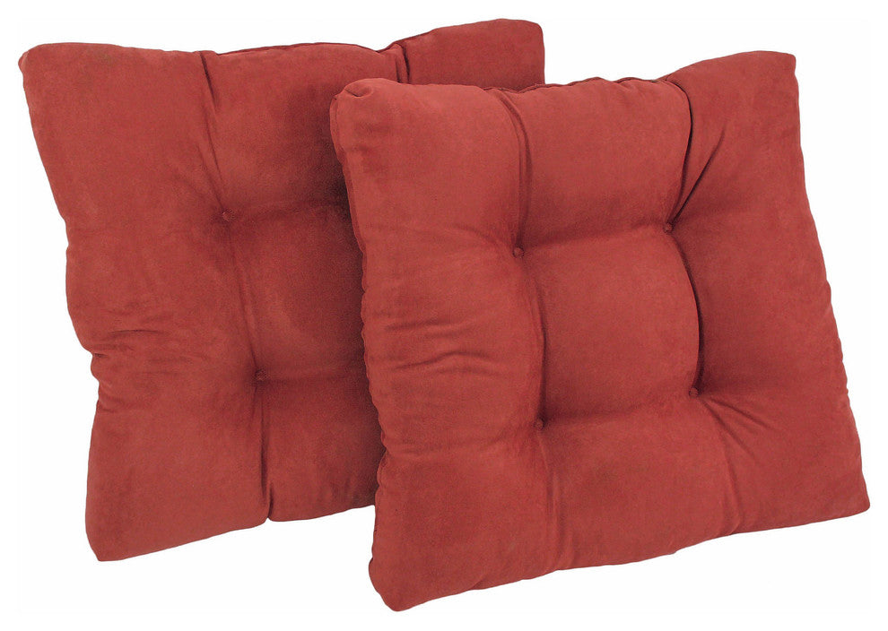 19" Squared Microsuede Tufted Dining Chair Cushion, Set of 2, Red Wine