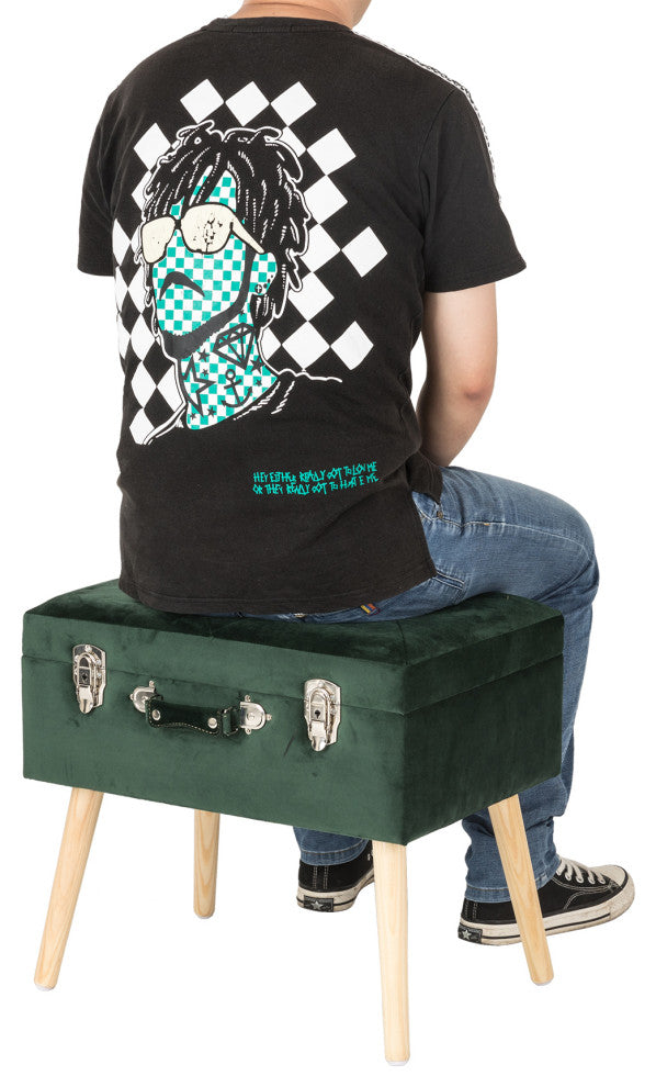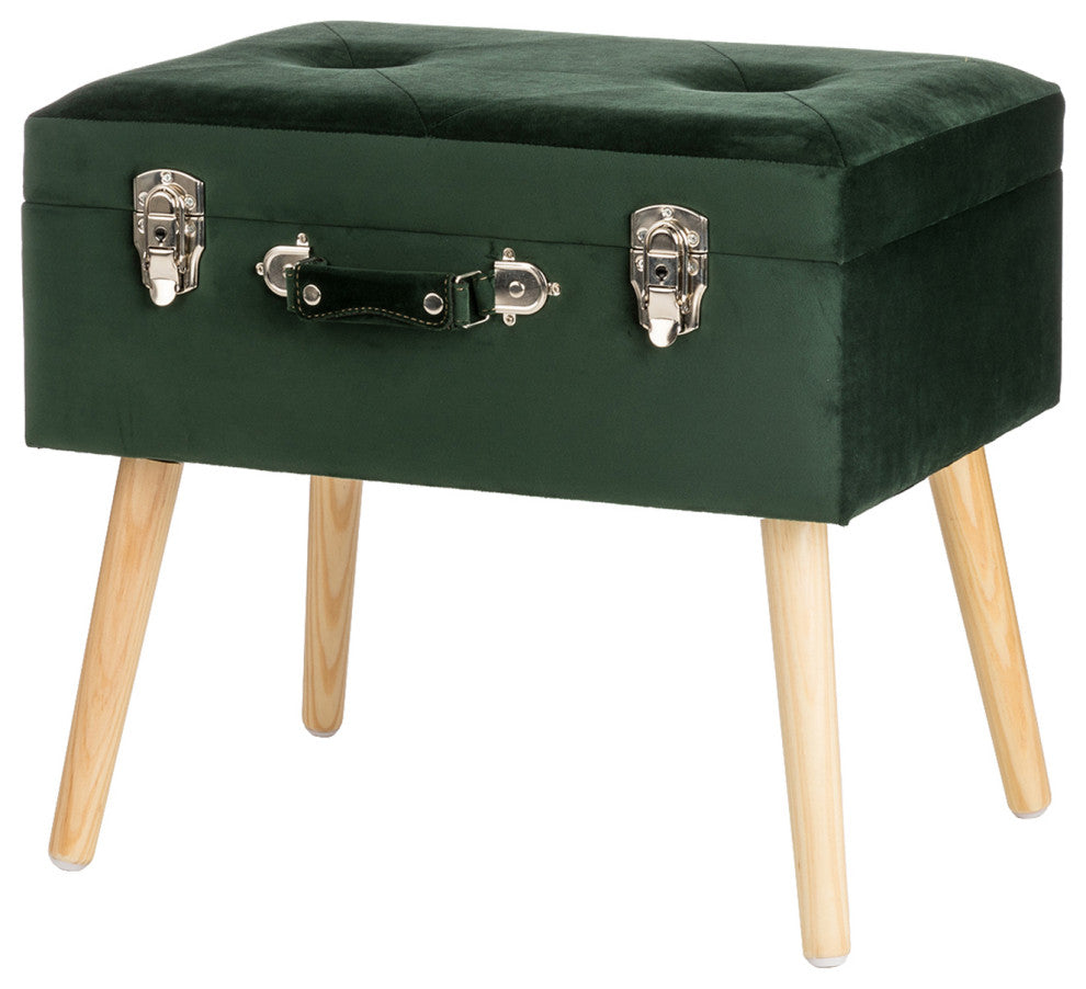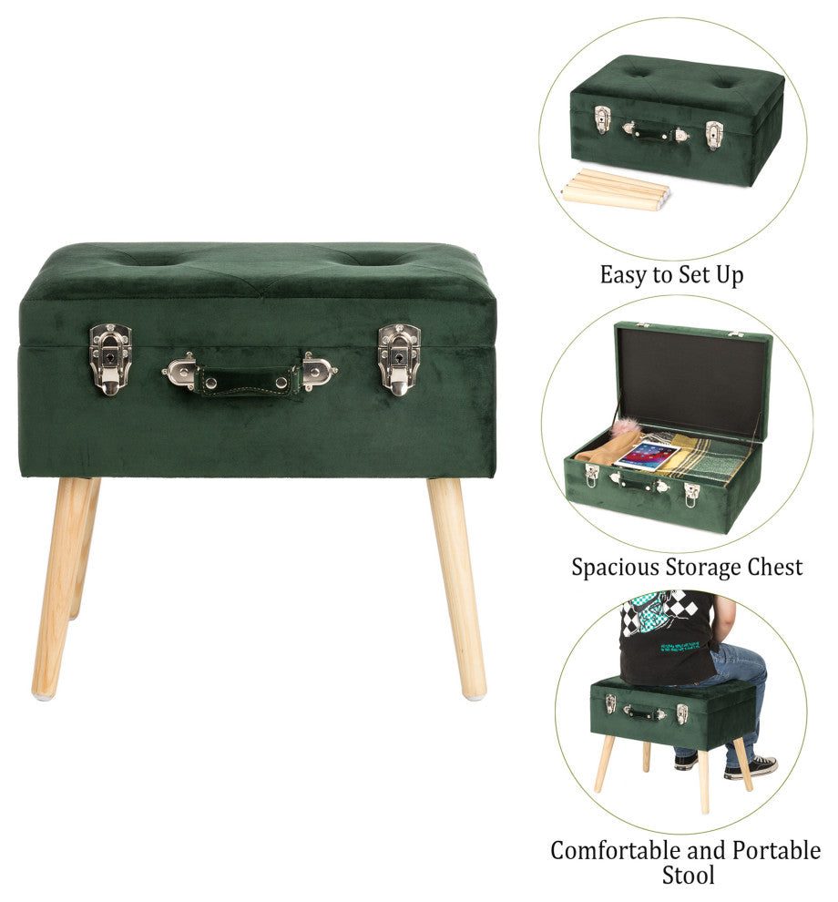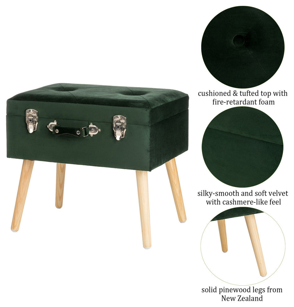 19.69"L Velvet Upholstered Storage Stool, Hunter