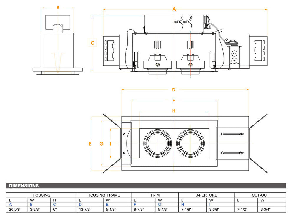 2-Light Linear New Construction, White Trim, White Gimbal, White
