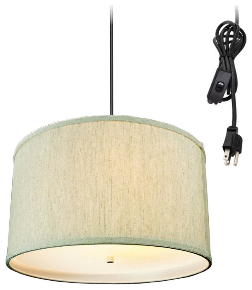 2 Light Swag Plug-In Pendant 16"w Textured Oatmeal with Diffuser, Black Cord