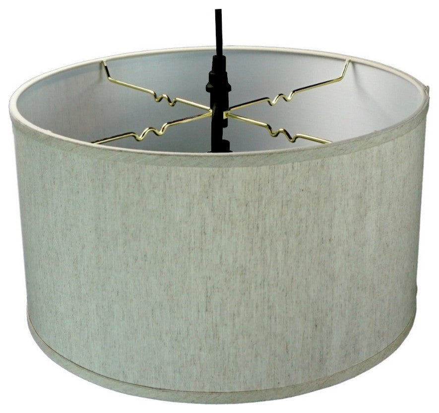Plug In Swag Pendant - The perfect addition to any dark corner or above a table that the builder didn''t provide electrical wiring. You will love your swag pendant light because it can move anywhere and put the light exactly where you need it. Wondering about size? Simply add the length and width of your space and that will give you the maximum bottom width of your pendant. If your swag is not centered in the room you should likely use smaller measurements to define the "space" you are lighting up. Why Upgrade to Home Concept Signature Pendants? Top Quality Premium Lampshades means your room will glow with a rich warm luster your guests will notice. Plus we include upgrades like a premium inner lining and quality fabric so your new shade will last for years. Heavy brass and steel frames mean you can feel the difference when you lift it.2 LIGHT SWAG CORD - 17'' Round Black cord with 3 prong grounded plug and handy on/off rocker switch 35" from plug.COMPONENTS - Includes 15.5" Round Diffuser Translucent Frosted White , 2 premium "bishop" ceiling hooks, and all hardware. WATTAGE - 2 x 150w Max bulb (not included) Accomodates Regular base incandescent CFL or LED bulb. (LED recommended) DIMENSIONS - 16" Top x 16" Bottom x 9" Slant HeightQUALITY - Top quality lighting found in better lighting showrooms. Durable quality shade. ETL APPROVED - Built with ETL approved components, for years of safe and reliable service Download Assembly Instruction and Tips