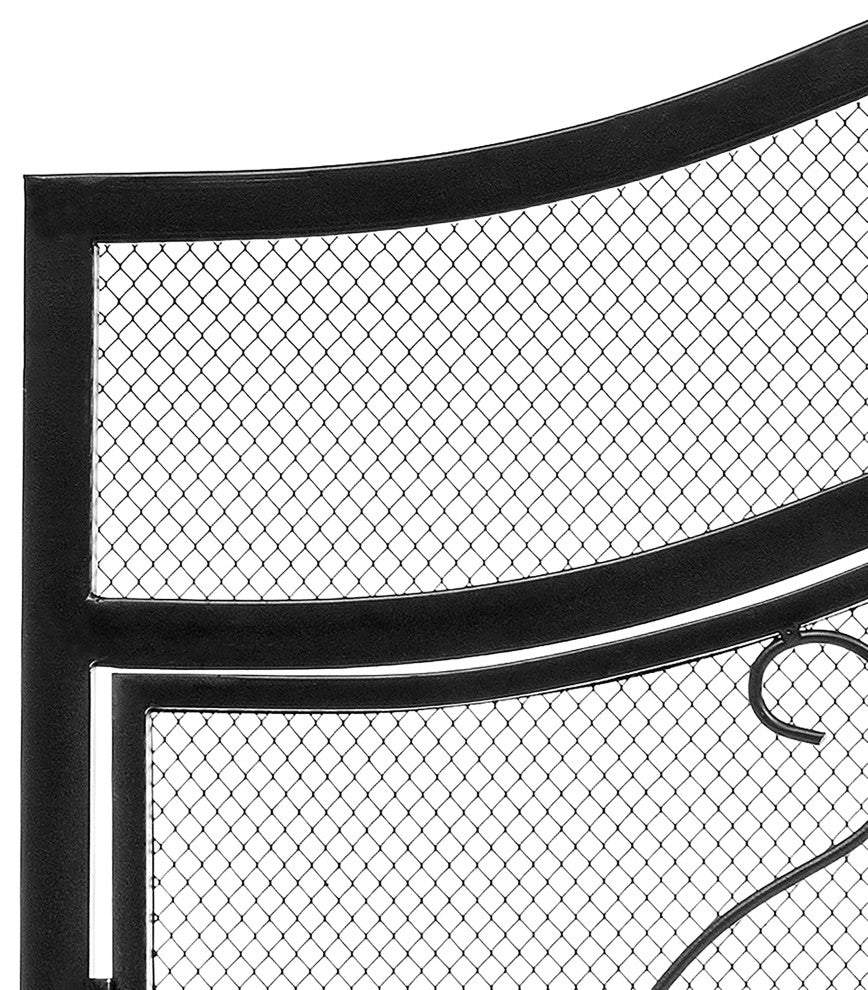 Use this 2-panel fireplace screen to bring safety and beauty into your home. You can watch the fire in the fireplace outside the screen, but sparks and embers cannot hurt you and your family. The solid and durable iron material can also greatly increase the service life. The unique pattern shows a modern style, and the black decoration can also be perfectly consistent with your other furniture. The size is 37.8" L •  12.2" W •  31.1" H, only for indoor use. A two-year product warranty is included.