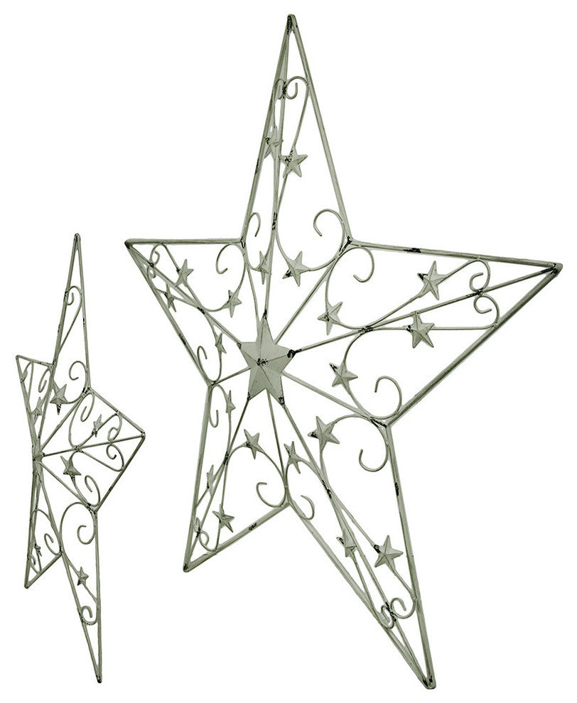 2 Piece White Rustic Cosmic Scrolls Decorative Hanging Metal Barn Star Set