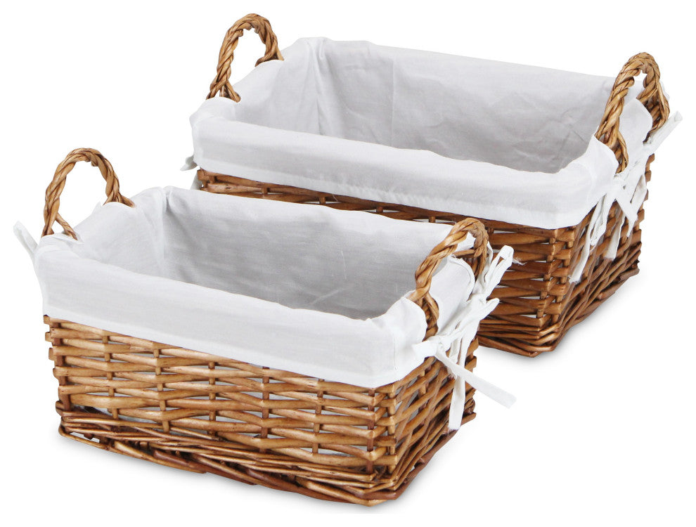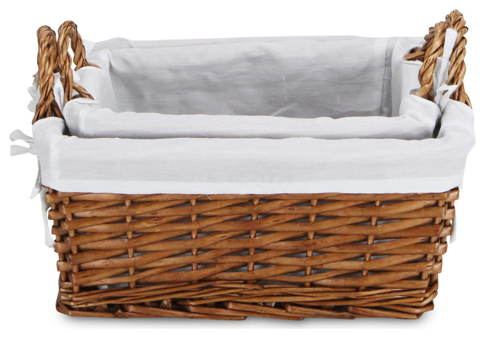 A truly timeless addition to any space, baskets have provided warm and traditional touch to homes everywhere. Perfect for a variety of decorative and functional uses, baskets take the prideful place as a generational and multi-faceted piece. This basket in particular features a large and small, rectangular set of willow baskets, each with a liner and side handles. Let its dependable design and finish provide a unique look to your home.