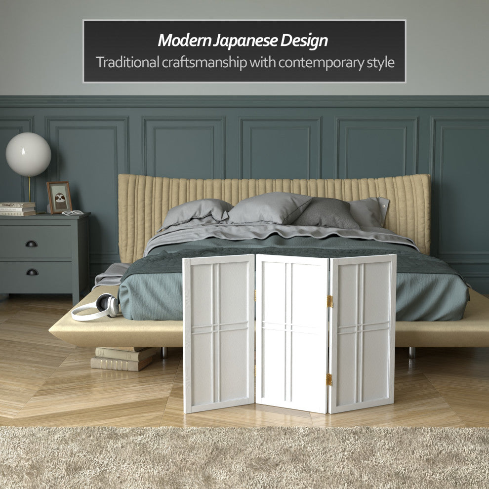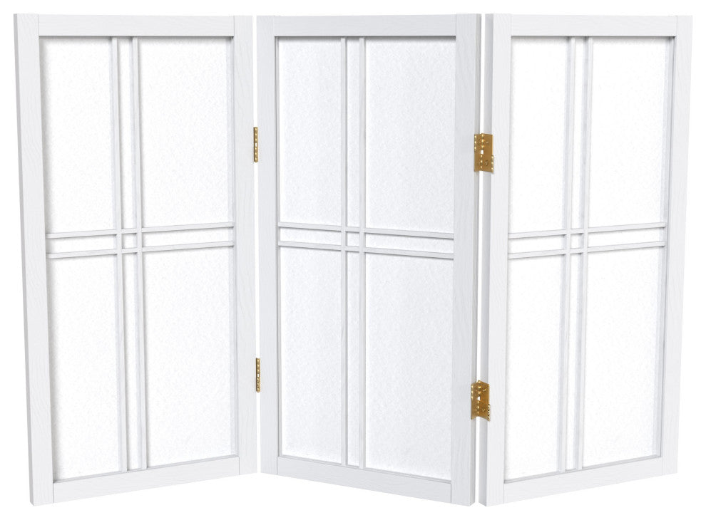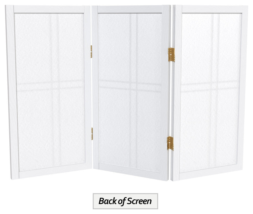 2' Tall Desktop Double Cross Shoji Screen, White, 3 Panels