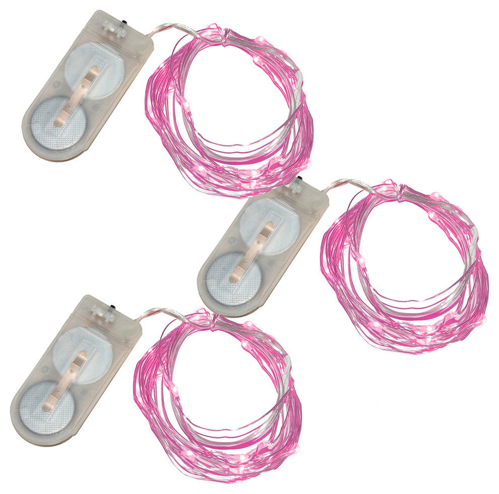20 Battery Powered Mini LED String Lights Ultra Bright White, Set of 3, Pink