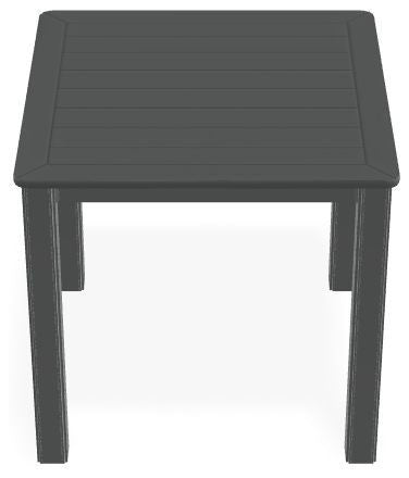Marine Grade Polymer Top Tables combine modern design with unmatched durability for outdoor living. With options in coffee, chat, dining, accessory, balcony, and bar heights, they offer versatility for any setting. Sleek lines and sharp angles create a clean, contemporary look, while marine-grade polymer surfaces resist cracking, rotting, and water damage. Built to last, these tables are a practical and stylish choice for outdoor spaces.Features:•  Overall product dimensions are 21" W x 21" D x 19.5" H•  Marine-grade polymer resists cracking, rotting, and water damage, inside and out•  Slat top design ensures durability, water drainage, and a sleek look•  Extremely durable 100% powder-coated aluminum frame will not rust, peel, or crack•  High-quality 100% stainless steel hardware•  Available in multiple color variations•  Proudly made in the USA with over a century of craftsmanship since 1903Dimensions:End Table•  Assembled Product: 21 inches wide x 21 inches deep x 19.5 inches high•  Weight Capacity: 350 pounds