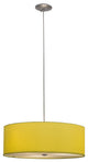 This stylish pendant is designed with a Sparkle Silver and Yellow linen styled Textrene shade, which is complemented with a White Satin finished Ida light bottom diffuser. The pendant is ideal for illuminating fun interiors in a home, resort or theme park and will complement any space or d cor. The fixture is handcrafted by Meyda artisans in our manufacturing facility in the USA. Custom colors, styles and sizes are available. Energy efficient lamping options are offered. The pendant is UL and cUL listed for damp and dry locations.