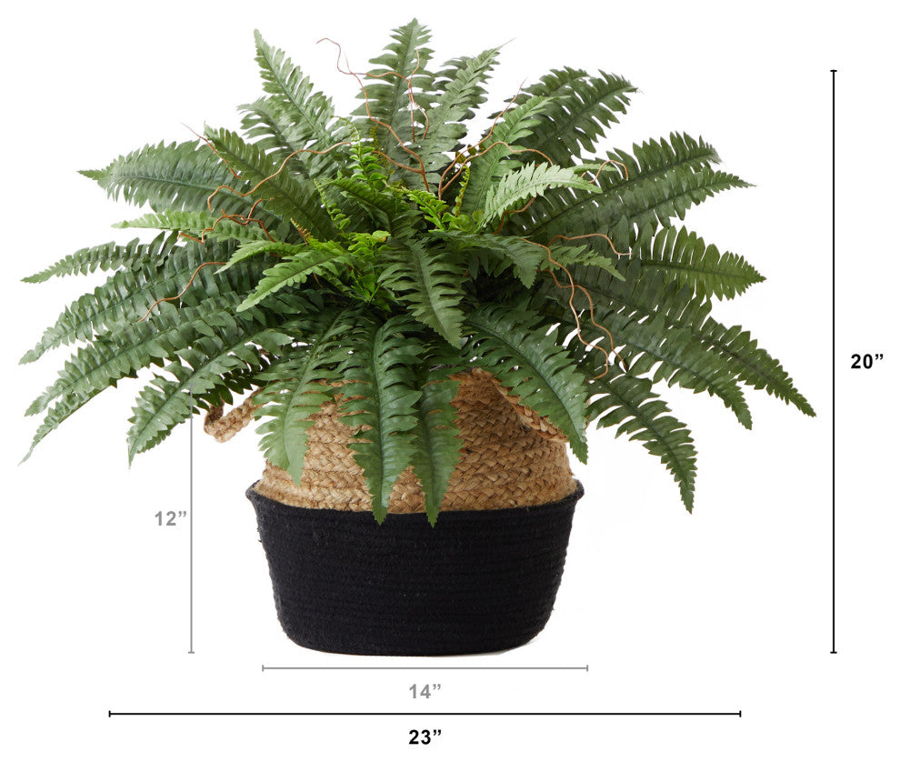 23in. Artificial Boston Fern Plant with Handmade Jute & Cotton Basket DIY KIT