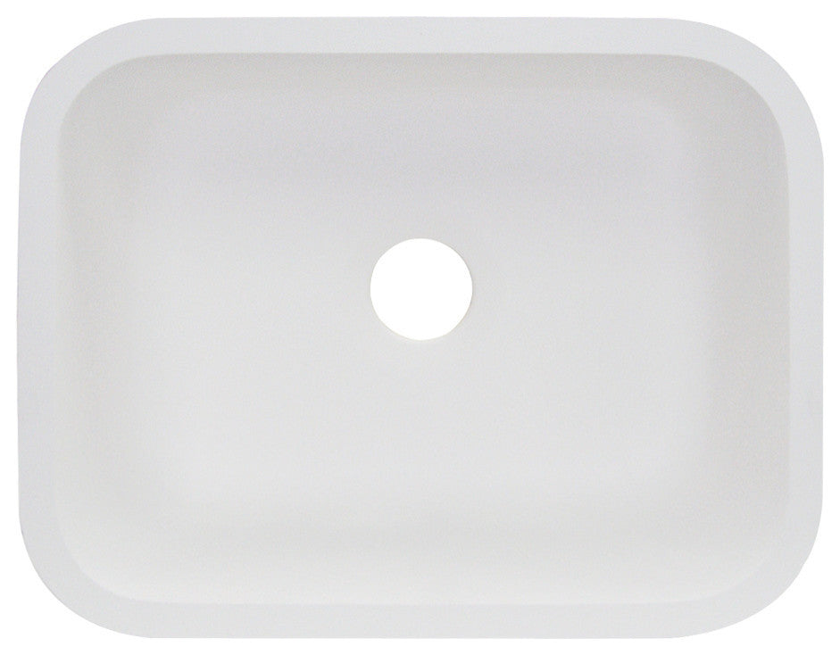 23" x 18" x 83"4" Gourmet single bowlUnder counter mount kitchen sinkSolid surface material is non-porous. Scratches and stains like coffee, juice, berries and burns are easily removed with abrasive cleaners, restoring and renewing original finish