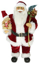 This traditional Santa Claus is wearing his standard red and white suit and has a teddy bear and wrapped present in his one hand and a sack of gifts over his opposite shoulder. | Santa''s piercing blue eyes gold wire glasses round chubby cheeks and friendly smile will be a nice cheery addition to your Christmas decor | Atop Santa''s deep red hat is a real jingle bell that makes a pleasing jingle sound when moved | Recommended for indoor use | Dimensions: 24"H x 12"W x 8.5"D | Material(s): plastic/fabric/faux fur/metal