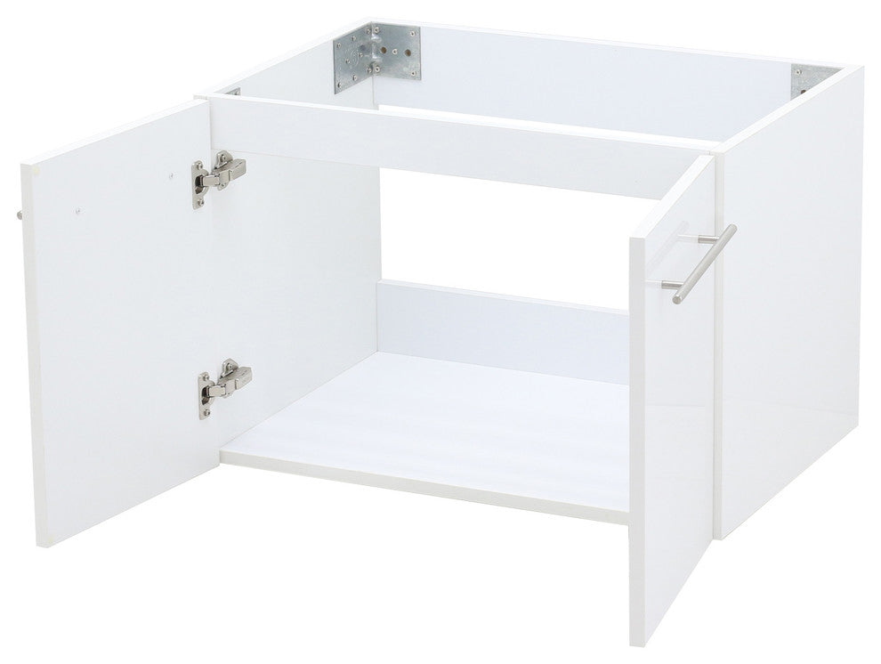 Vanity cabinet:•  Brand: WindBay •  Cabinet width : 23"•  Cabinet depth: 20"•  Cabinet height without countertop: 19-1/2"•  Durable finish and easy to maintain.•  Upgraded brackets. Construction hurricane grade brackets.•  Heavy Duty hydraulic soft-closing hinges.•  Completely finished panels, including edges.•  Assembly required. White stone counter top:The countertop is made from white stone. Polished in a high durable stain and scratch resistant finish. •  Width: 24" •  Depth: 20-1/2" •  Faucet hole: 1-3/8"(35mm) diameter •  Drain hole: 1-3/4"(45mm) diameterWhite ceramic vessel sink: •  Width: 16" •  Depth: 16" •  Height: 5"Includes: Sink, countertop, vanity cabinet, handles and assembly hardware. The faucet is not included.Attention: •  The vanity set only includes the hardware for assembling the cabinet. •  The hardware for installing the vanity to the wall is not included. •  Please have a professional installer or get expert advice before installing the vanity to the wall.•  The four brackets are located at the four corners of the shipping box.•  Due to screen differences, the actual color may vary slightly from what appears on your monitor or phone. Contact us for a color sample if you need help selecting a finish.